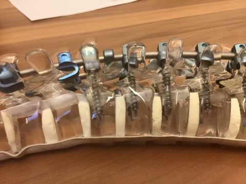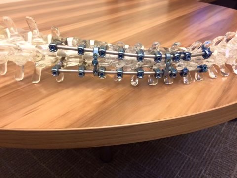 Spinal fusion is a type of surgical procedure that joins two or more vertebrae into one singular structure. This involves applying hooks and screws to the spine to anchor large titanium rods. The rods are used to carefully reposition the areas of the spine that are affected by scoliosis. This helps to correct the abnormal curvature and rotation of the spine. Essentially, the rods are used as a splint to hold the spine in place while the bones (vertebrae) slowly begin to fuse. Once the procedure has been completed and the bones have fused, it will then hold its position and shape due to the loss of flexibility that the vertebrae would otherwise permit.